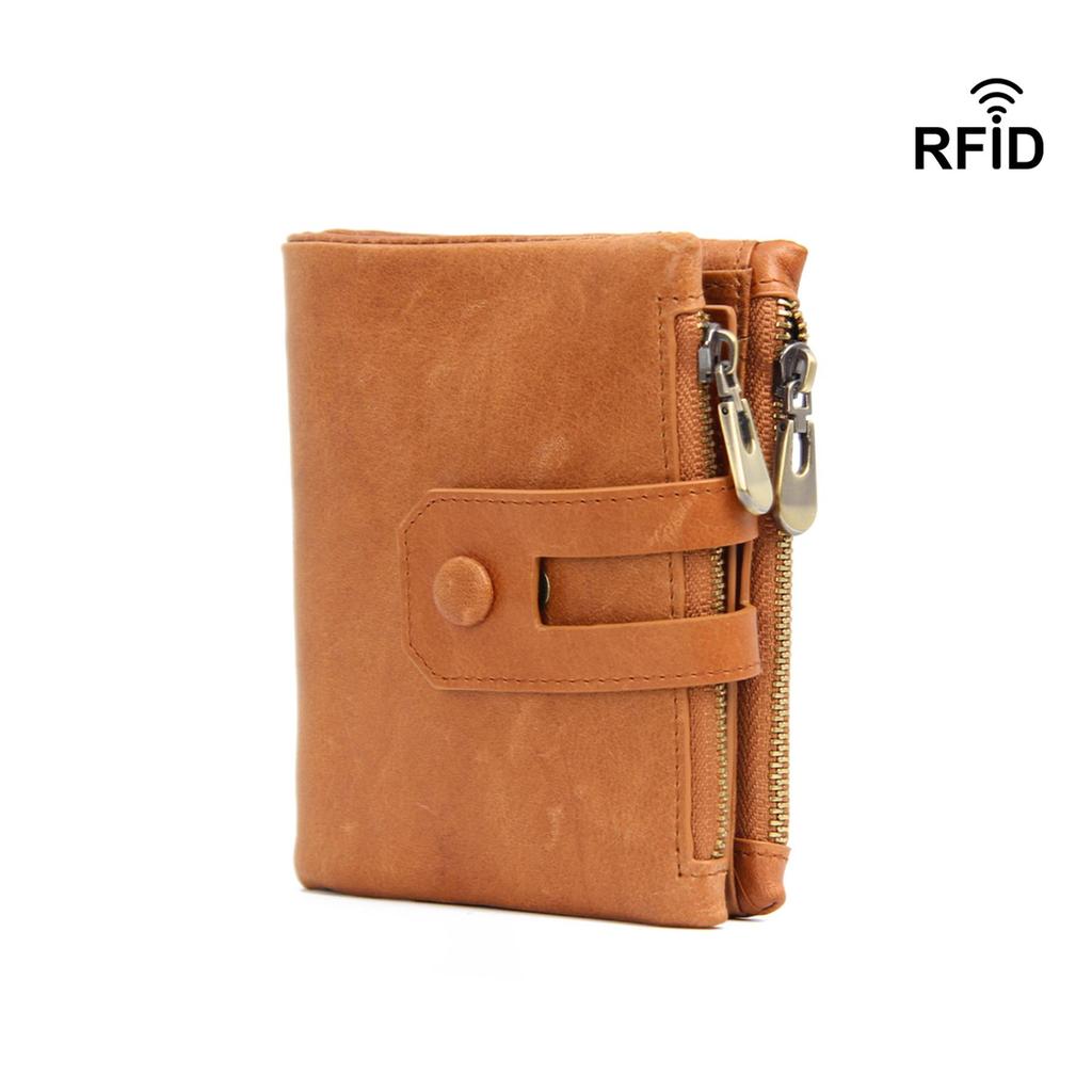 Men's Crazy Horse Leather Bifold Wallet with Multi-Card Slots and Coin Pouch