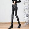 These stylish Women's High Waist Black PU Leather Motorcycle Pants are designed for both comfort and flair during the winter months. Made from high-quality faux leather, these pants feature an elastic pencil legging fit that enhances your silhouette. The interior is lined with soft velvet, ensuring warmth and coziness. A unique letter decoration adds a trendy touch, making these pants a fashionable addition to your wardrobe. Perfect for pairing with your favorite tops and jackets, these pants offer both versatility and elegance for any occasion.