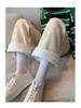 Discover ultimate comfort and style with these women's high-waist, fleece-lined wide-leg pants. Crafted from soft, knitted polyester, these pants are designed to provide warmth during the cooler autumn and winter months. Their loose-fit and casual style ensure a relaxed yet fashionable look, perfect for everyday wear or cozy lounging. Embrace the season in comfort and elegance with these versatile pants.