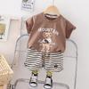 This two-piece summer sports suit for boys is designed for small and medium-sized children and is perfect for warm-weather activities. Featuring a short-sleeve top, the outfit is crafted from soft, breathable cotton to ensure comfort throughout the day. With its fun cartoon-themed design, this set offers both style and ease, making it an ideal choice for playful summer adventures.