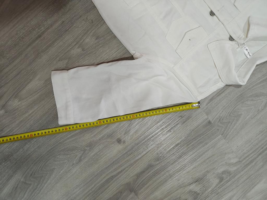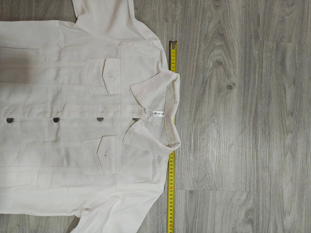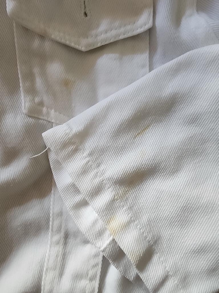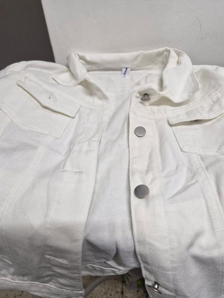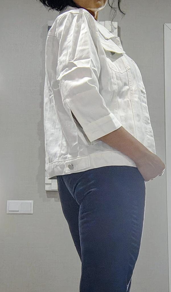 The denim jacket arrived, sewn well. My size. But one rivet is torn off. Will have to change it at the studio. Thank you.