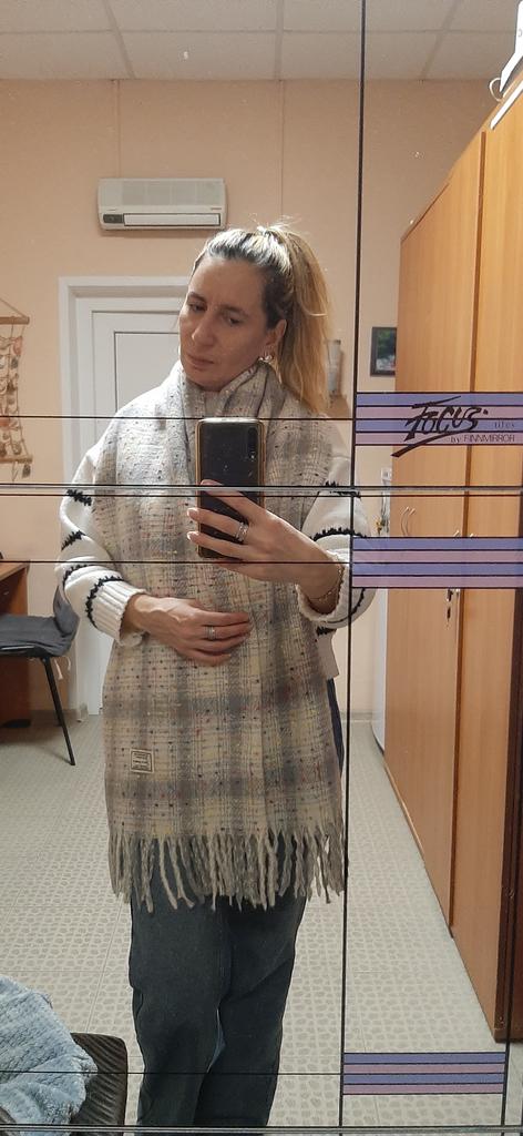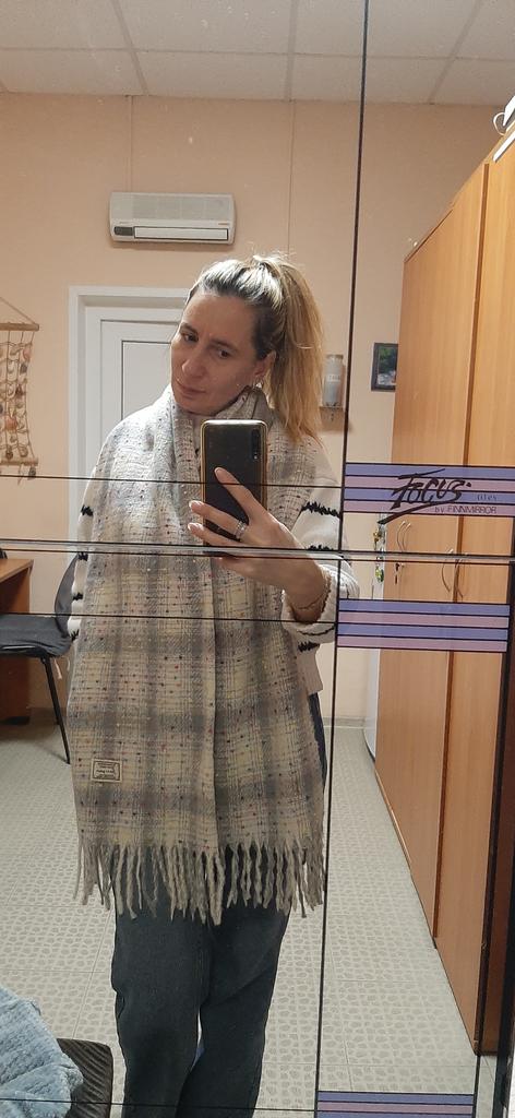 Veery soft and warm scarf. It's veery cozy. I recommend it.