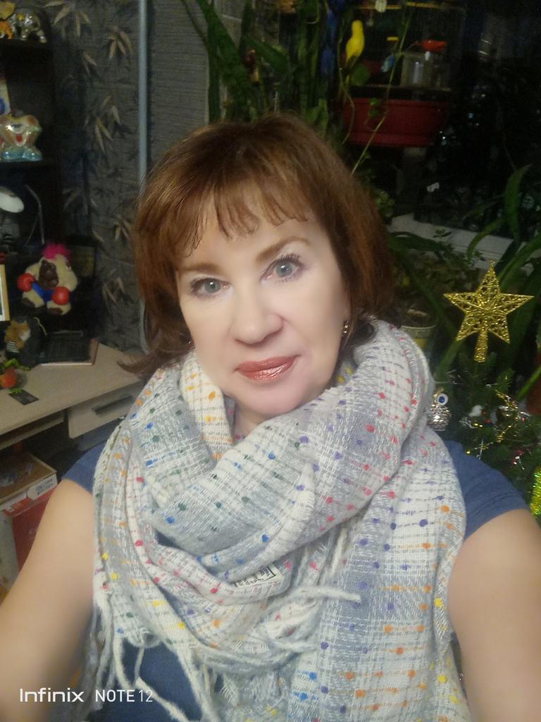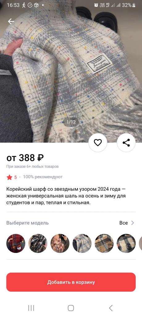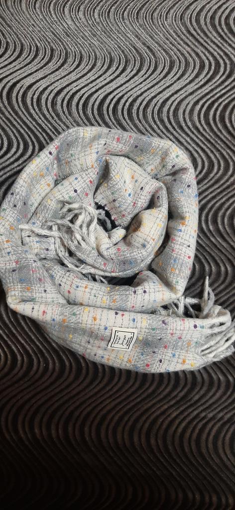 The scarf is soft, very pleasant to the touch. I took white with colored speckles, it goes with different clothes and hats.