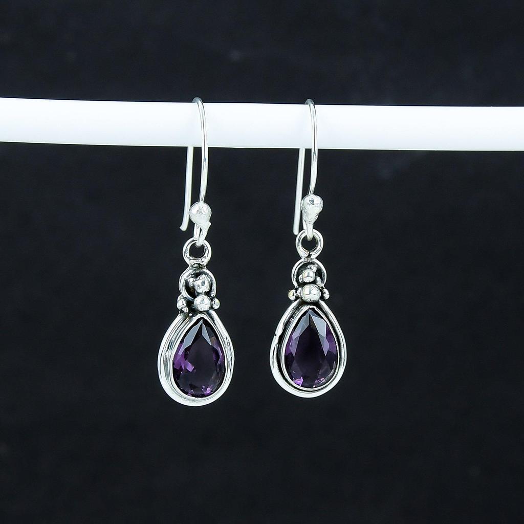 Beautiful Amethyst Gemstone Earrings, 925 Sterling Silver Earring, Handmade Boho Silver Jewelry Dangle Earrings, Engagement Gift