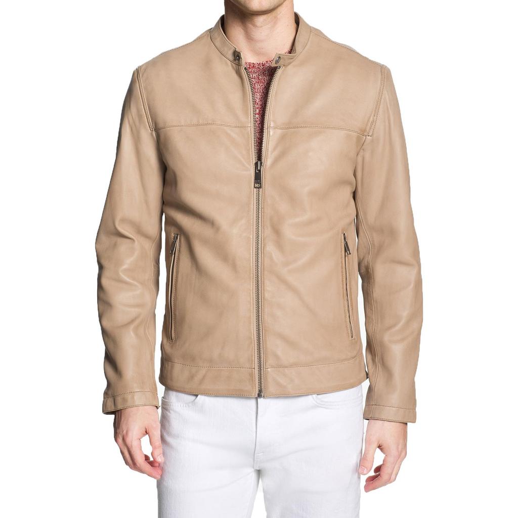 SKINOUTFIT Men's Genuine Lambskin Beige Leather Jacket Stylish Motorcycle Bomber Biker Outerwear MJ 92