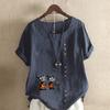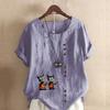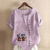Women's Fashion Music Cat Prined Short Sleeve T-shirt Loose Cotton Shirt Casual Loose Summer Blouse Tops Plus Size