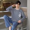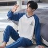 Cotton Nightwear for Men 2 Pieces Set Pajamas Spring Long Sleeves Sleeping Tops Trousers Sleepwear