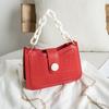 Crocodile Pattern Women's Small White Bag with Button and Chain