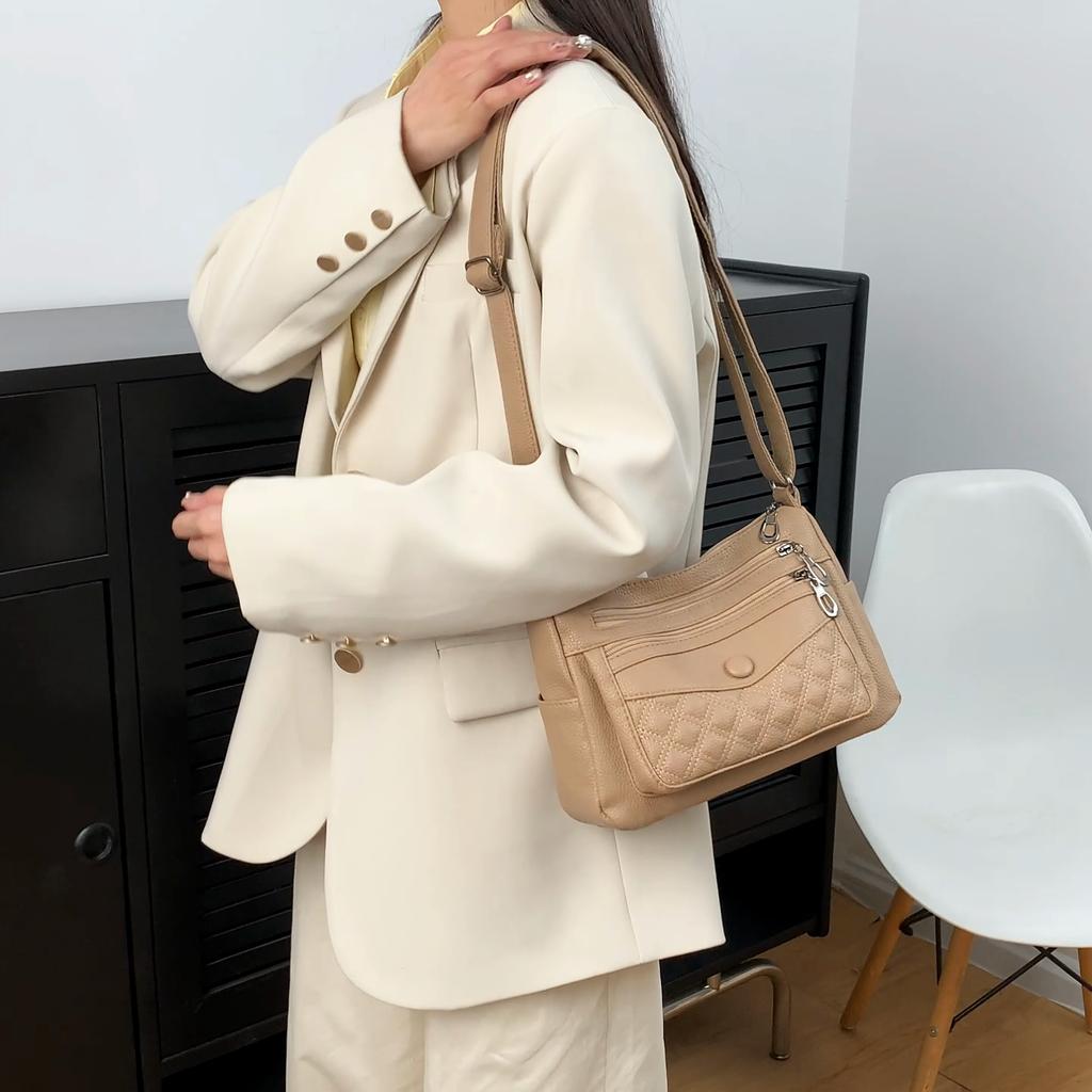 Lingge Women's Bag Soft Leather Crossbody Bag Middle-aged Mother's Bag Shoulder Bag