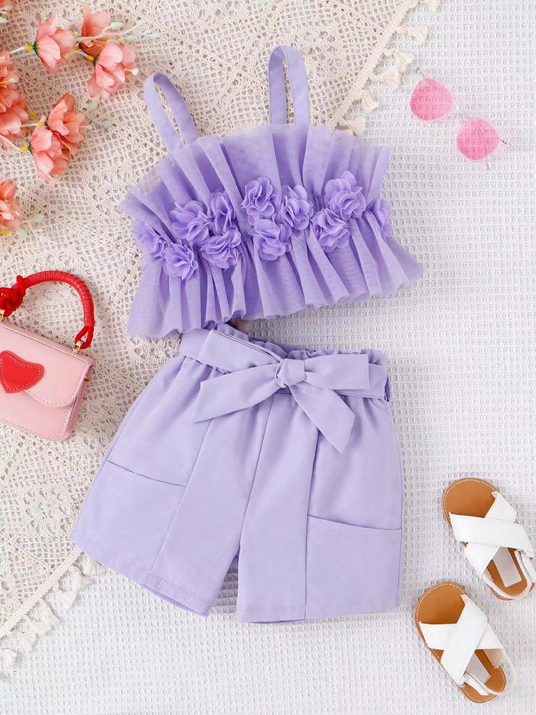 Girls Elegant Set Spring Summer Children Flower Halter Top Shorts Fashion Set