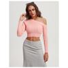 Women's Autumn and Winter Twist Wool Knit Straight Off-the-shoulder Long Sleeve Short Pullover Sweater Top