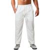 Men's Straight Mid Waist Beach Pants Vertical Stripe Elasticated Waist Cotton Linen Casual Trousers