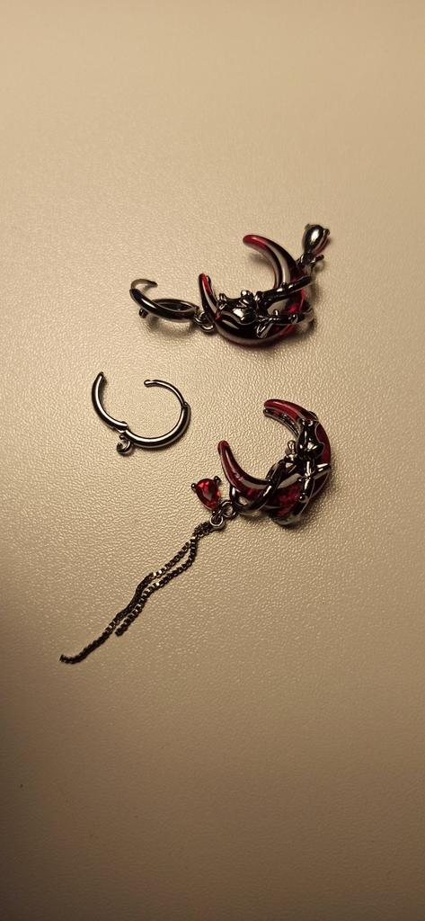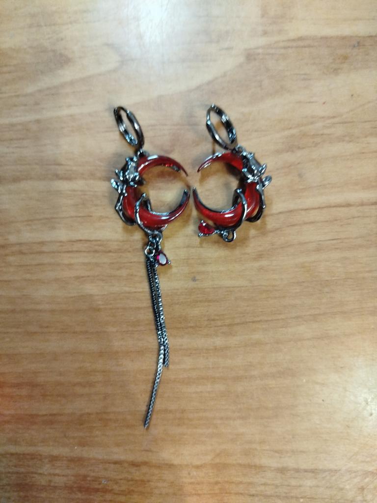 1Pc/Pair Red Moon Asymmetric Earrings Personality Hip-Pop Gothic Opening Rings Personalized Tassel Chain Eardrop Jewelry Gifts