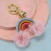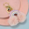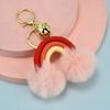 Bohemian Rainbow Fur Ball Keychain with Hand-Woven Cotton Rope and Faux Rabbit Fur Pendant