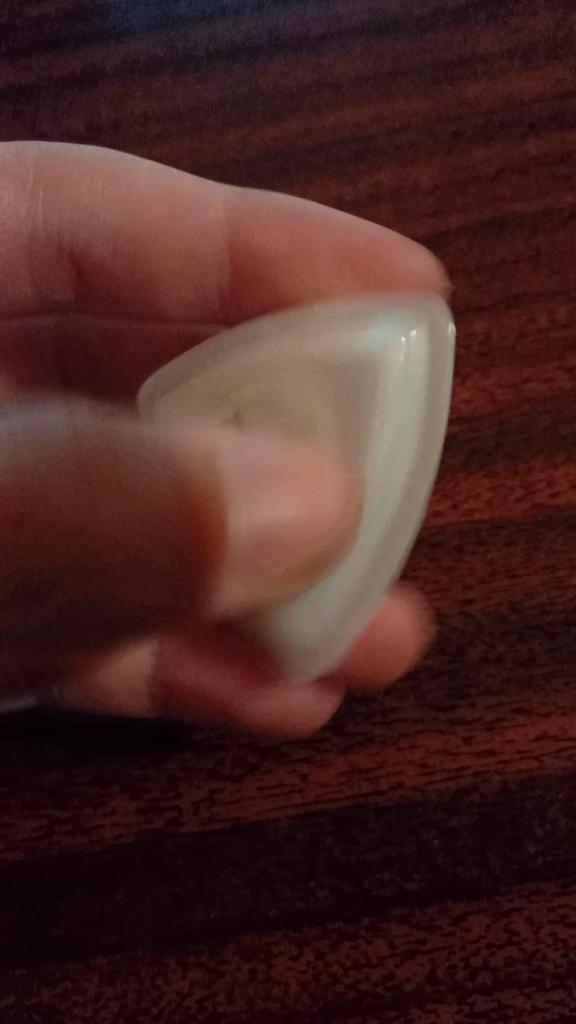 Very nice plectrum, glows beautifully, arrived undamaged. Larger than usual but how it glows is worth it.