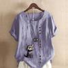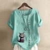 Women's Fashion Cat Prined Short Sleeve T-shirt Loose Cotton Shirt Casual Loose Summer Blouse Tops Plus Size