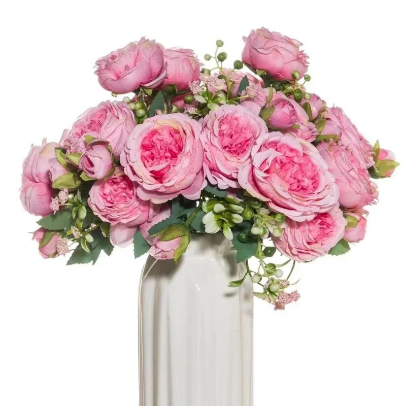 Artificial Flower Fake Silk Peonies Used for Home Room Vase Decoration Christmas Wreath Wedding Bouquet Party Accessories