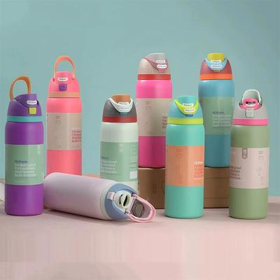 New Stainless Steel Thermos Cup High Appearance Level Simple Portable Bouncing Cup Boys and Girls Large Capacity Straw Cup