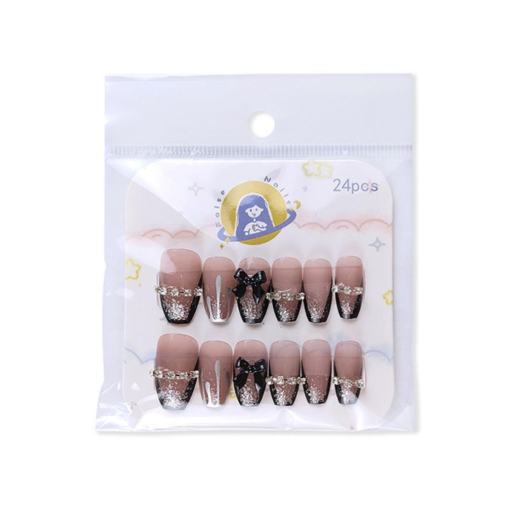 Coffin Press On Nail Glossy Fake Nail Stick On Nails In 12 Sizes 24Pcs French Nails Tips for DIY Nails Art Decorations