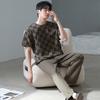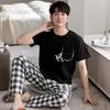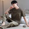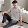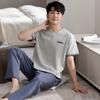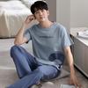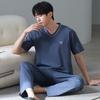 Blue Color Men's Cotton Pajamas Set for Summer Short Sleeves Sleeping Top Long Pant Nightwear Young Boy Home Clothes