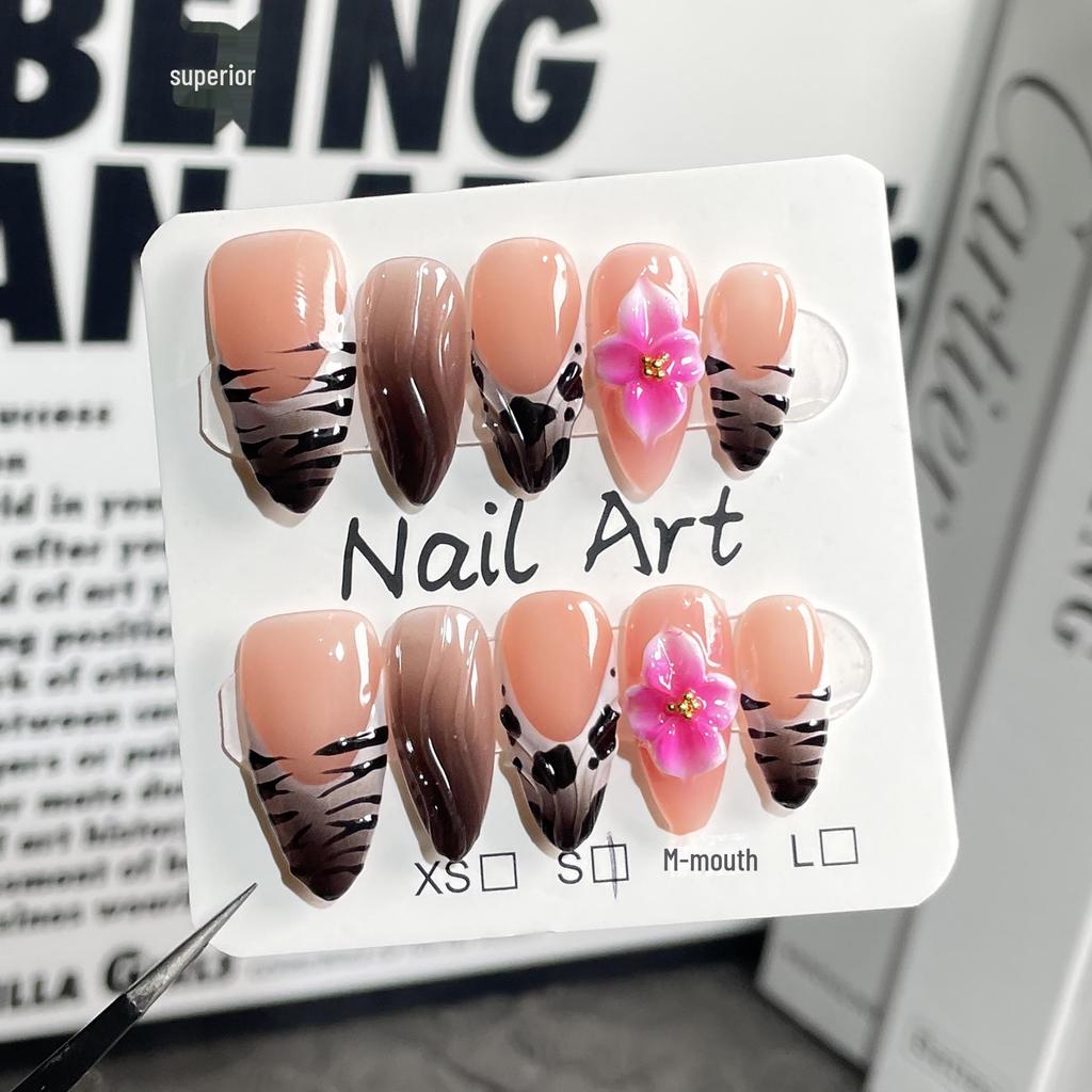 Handmade 3D Carved Ice-Transparent French Nail Art Patches, Ins-Style Almond Nails