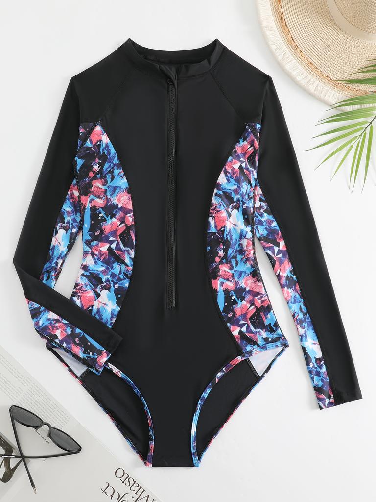 Women's Sexy A Piece Of Bathing Set Swimsuit Long Sleeve Zipper Swimsuits Slimming Swimwear