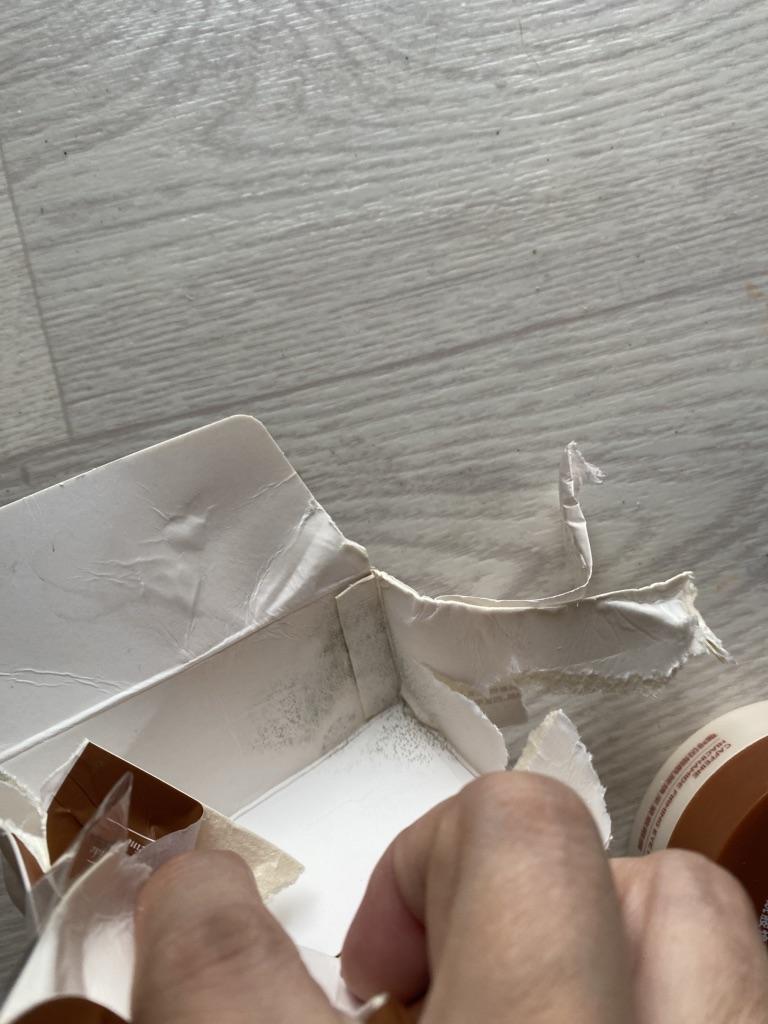 The packaging is crumpled