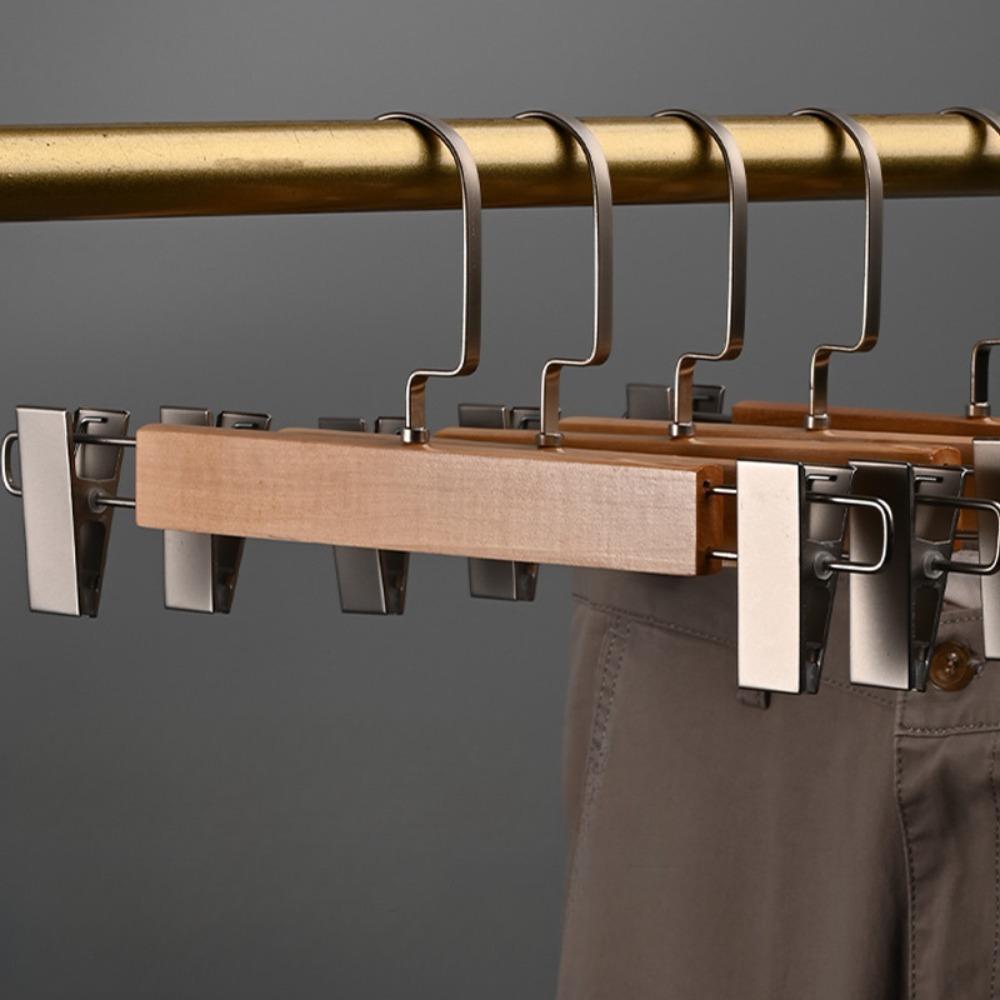 Nature Solid Wood Deluxe Wooden Pants Hangers Bottom Hanger Jeans Hanger Skirt Hanger with 2-Adjustable Clips Anti-Rust Hook