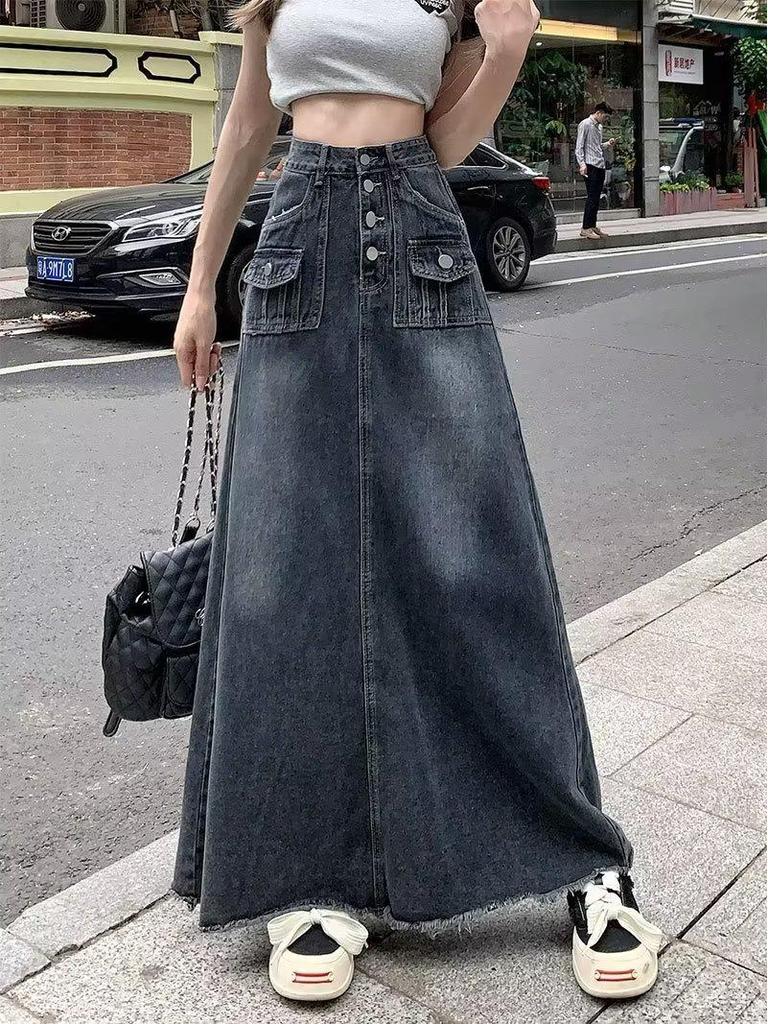 This plus-size, high-waist, retro A-line denim skirt is a stylish summer essential for women. Crafted from quality denim, it offers a slimming effect with its flattering mid-length design. Perfect for casual outings or a chic daytime look, this skirt is both versatile and comfortable, embodying classic fashion with a modern twist.