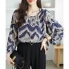Fashion Elegant Casual Loose Chiffon Shirts Women Long Sleeve Tops Plus Size Women's Blouses Round Neck Slim Vintage Print Shirt Woman Clothing 26340