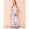 Women's Summer Casual One-line Collar Print Lantern Sleeve Fashion Dress