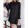 Spring Women's Bow Tie Beaded Long Sleeve Solid Colour Dresses