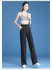 Women's Plus Size High-Waist Ice Silk Wide-Leg Pants - Black Summer Drape