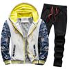Stay warm and stylish during the colder months with this men's winter sports sweater set. Designed with a military camouflage pattern, it features a stand neckline and long sleeves for optimal coverage against the chill. The thick velvet interior provides an extra layer of warmth, while the loose fit ensures comfort and ease of movement. Made from durable polyester fibers, this set is both practical and fashionable, perfect for outdoor activities or casual wear. Plus, the availability in larger sizes ensures a great fit for everyone.