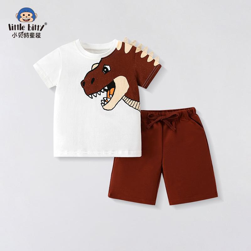This stylish two-piece set is perfect for active boys during the summer months. It features a short-sleeve t-shirt and comfortable shorts, both crafted from high-quality knitted material. Designed with European and American influences, the set combines modern fashion with practicality, making it an ideal choice for playtime or casual outings.