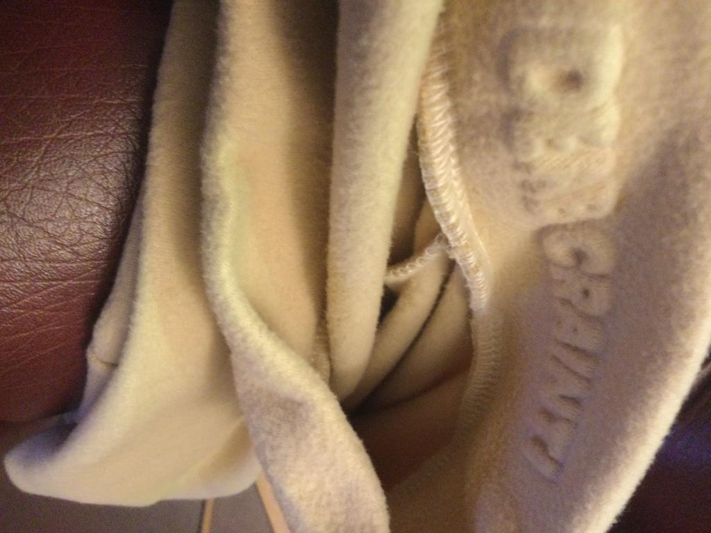 The collar is sewn on the "left" side. The inscription is on the inside.