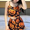 Sexy Nightwear Women Halloween Silk Pajamas Set Pumpkin Print Suspenders Loungewear Sleepwear Fancy Underwear Girl Home Wear