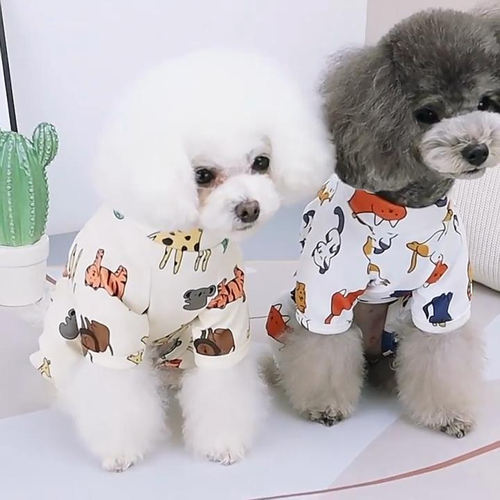 Spring Summer Casual Pet T-Shirt for Cats Dogs with Animal Print, Comfortable Breathable Puppy Kitten Shirt