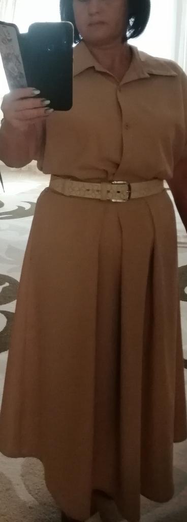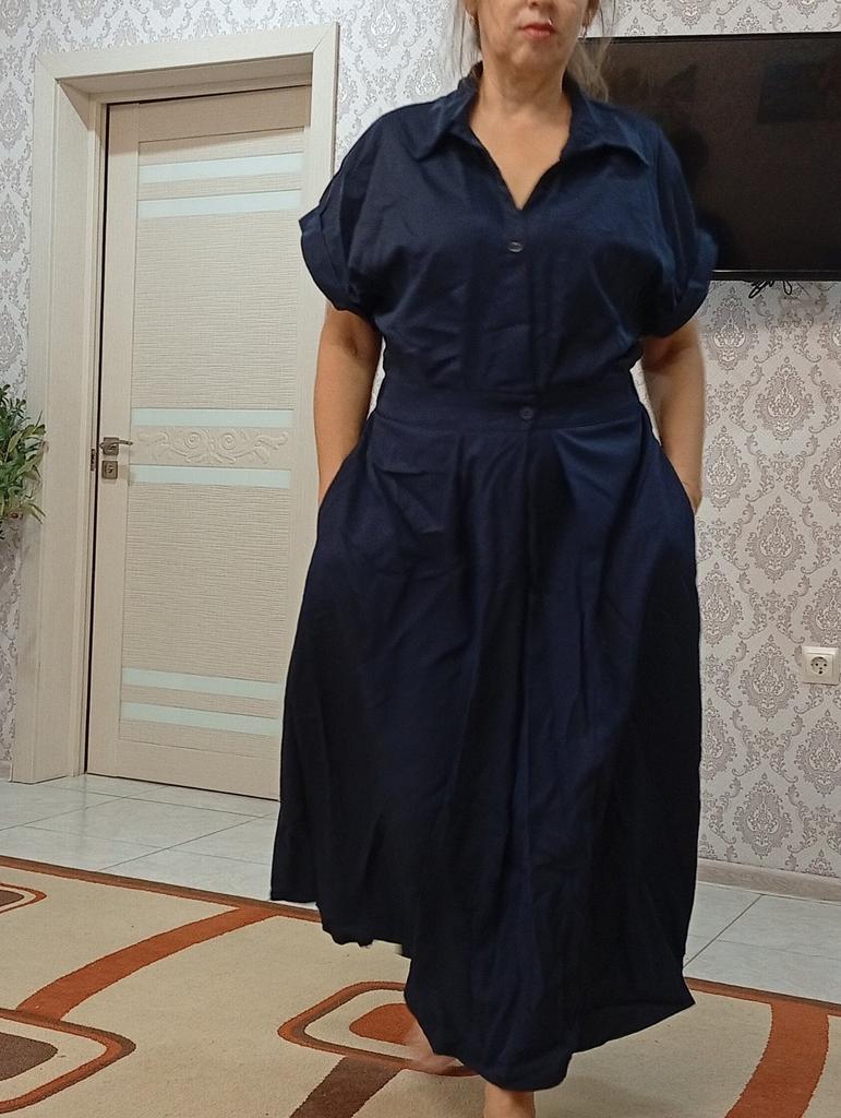 The dress is not bad, I widened the elastic in the waist, it fit well for size 50. . The color is beautiful, as in the photo