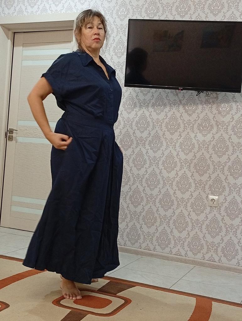Good dress, even slims the figure, the color is pleasant. Everything is as in the picture. I am 160 cm, it is long for me. But it doesn't spoil the look. I wear size 58