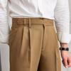 These men's khaki slim high-waist straight-leg trousers are designed for a polished business casual look. Made from a blend of chemical fibers and acetate material, they offer a comfortable yet stylish fit. The high-waist design and straight-leg cut provide a modern and flattering silhouette, making them ideal for both professional and semi-formal occasions.