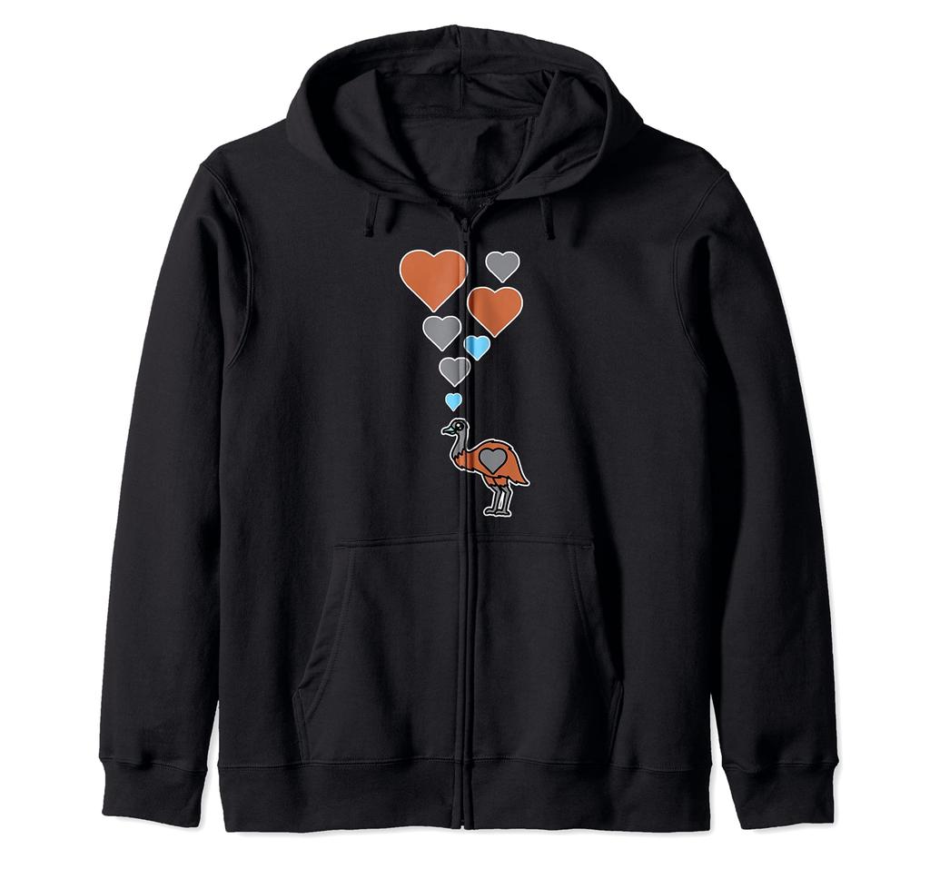 Cute Emu With Hearts Hearts Cute Emu Zip Hoodie -