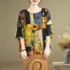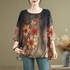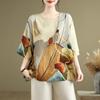 DIMANAF 2024 Summer Plus Size Women T-Shirts Print Floral Elegant Batwing Sleeve Tops Tees Loose Casual Linen Shirt 91706