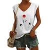Women's Vest Crane Printed Sleeveless V-neck Tank Tops Female Clothing Fashion Streetwear Basic T-shirts Cap Sleeve Tops S-3XL