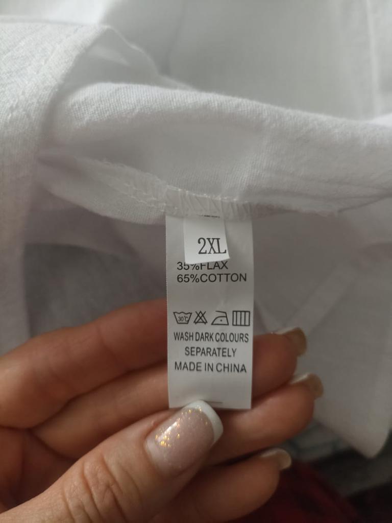 The size didn't fit me - the blouse is too small. I didn't remove a star for that. But for writing that it's cotton, when in reality it's 65% cotton and 35% something else – it's written on the tag in the inner seam. Misinformation. If I had known it had additives, I wouldn't have ordered it.