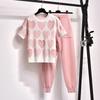 Spring Women Short Sleeve Beading Tops Love Printed 2 Piece Set Jogging Pants Casual Suit