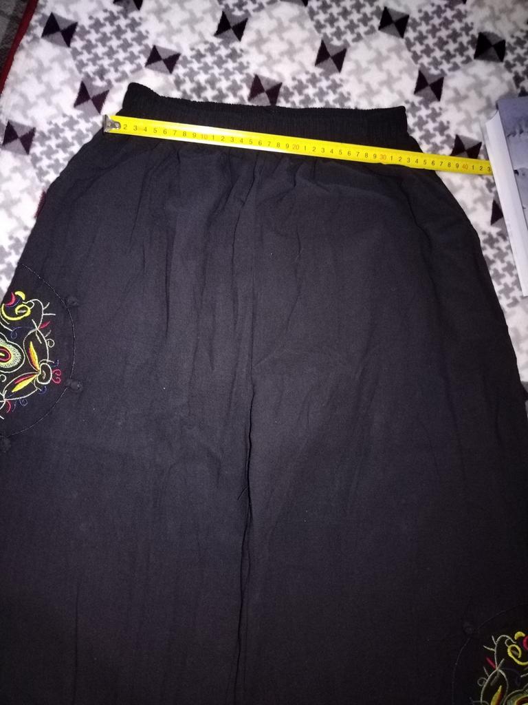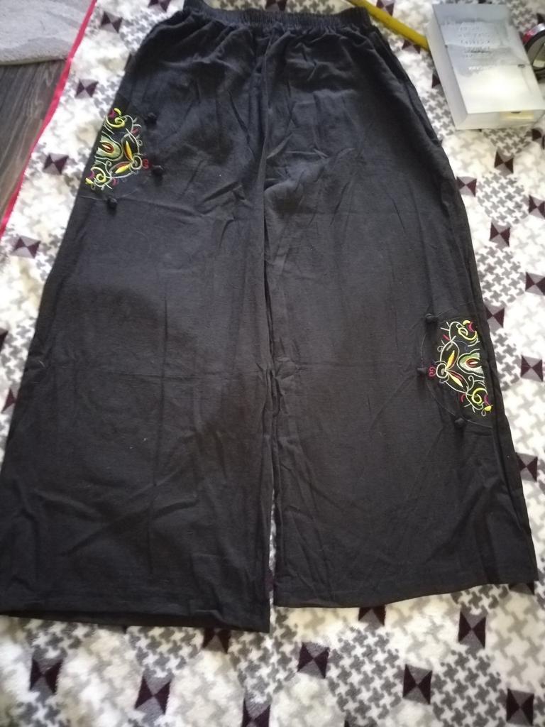 2025 Spring and Summer Cotton and Linen Retro Ethnic Style Embroidered Wide-leg Pants Versatile and Thin Nine-minute Pants