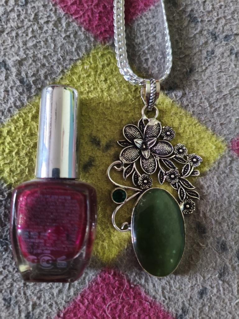 Natural Nephrite, Diopside 925 Sterling Silver Jewelry Pendant 3.23" P0p82
