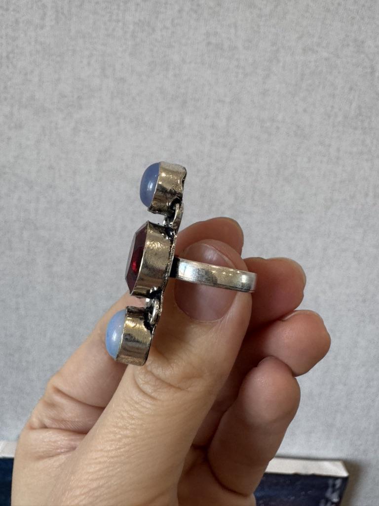 I wouldn't say the ring is perfect, but it's not bad! The stone is opal and glass.