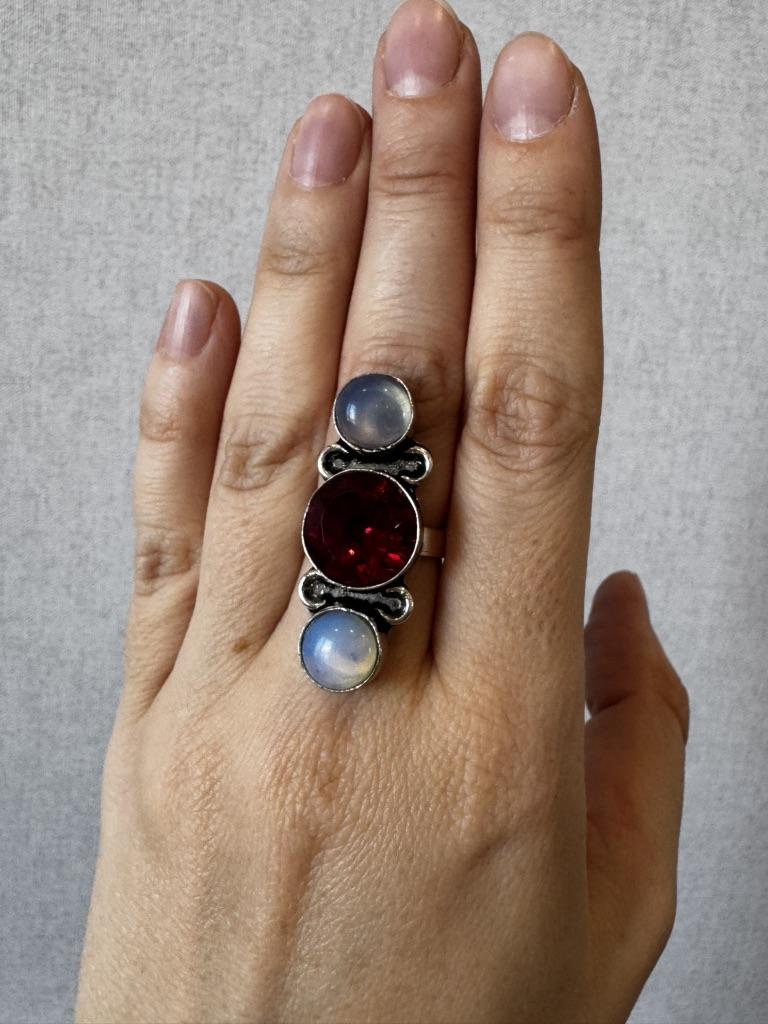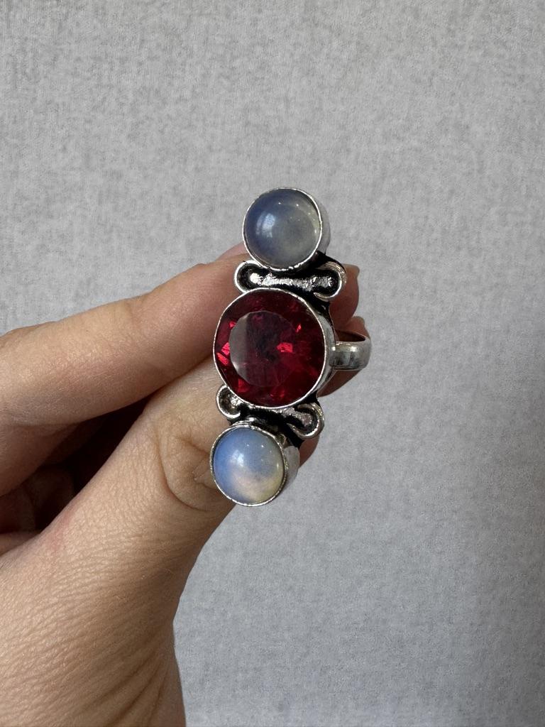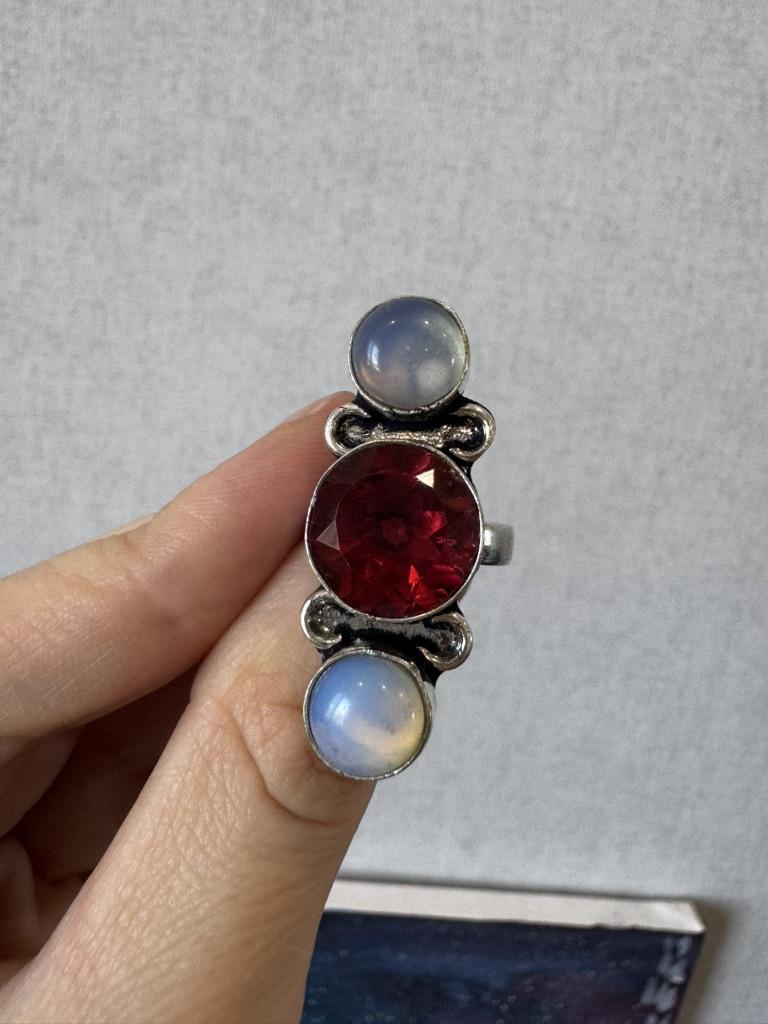 Natural Milky Opal, Rubillite 925 Sterling Silver Jewelry Ring Size 5 s4K74